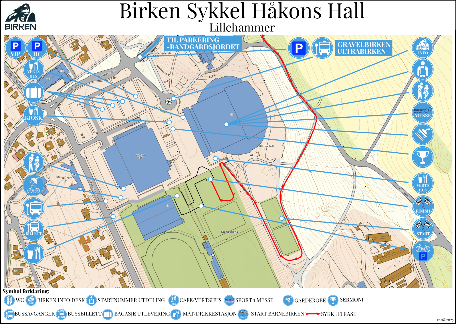 The course starts at Birkebeineren Ski Stadium and finishes at Håkons Hall.